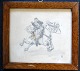 3 gamle 1800 tals tegninger med hestemotiver hver indrammet i birketræs ...
