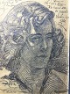 Tegning af Hans Jørgen Korn 1928 - Portræt af kvinde.