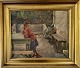 Peder Mønsted 1859-1941. "3 børn leger på en eng" oliemaleri på malerpap.