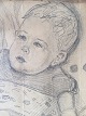 Tegning af Hans Jørgen Korn - Barneportræt af Helen 1936.