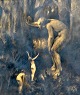 Dansk kunstner (20. årh. ): Feer og satyr i skov. Symbolistisk billede. ...