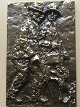 Bronze relief af Knud Nellemose 1978 - Ældre par på tur med hund.