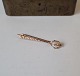 Broche i 14 karat guld, med perle og lille diamant. Stemplet WG 585.
