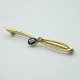Guldbroche med facetslebet blå safir. 14 karat guld, stemplet 585