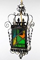 Lampe med blyindfattede glas i forskellige farver, vintage cirka 1960'erne.