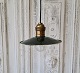 Skøn gammel lille pendel, fatning i messing med grøn emaljeret skærm i metal