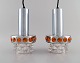 Raak, Holland. To loftspendler i forkromet metal og kunstglas. 1970'erne.