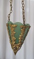 Entre hængelampe i bronze med grønt glas, ca. 1880 - 1900.