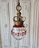 Retro loftslampe, rød, messing og hvid glasskærm