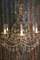 Gammel fransk prismelysekrone med masser af klare og rav farvet glas ...