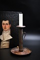 Antik svensk lysestage fra 1800 tallet i træ og lysholder i smedejern. . .