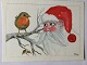 Akvarel af Erik Stuhr - Rødkælk på gren og julemanden.
