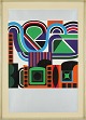 Farvelitografi af Finn Lohmann - Komposition 1976.