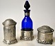 Sæt med tre salt- og peberbøsser i tin, to med ...
