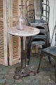 Gammelt fransk café bord med fin støbejerns fod og marmorplade på toppen. . .