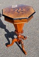8 kantet sybord i valnøddetræ med intarsia, 19. årh. Danmark.