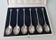 Samling sterling sølv theskeer i æske, 20. årh. Danmark.