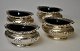 4 stk. sølv saltkar med blå glas indsats, 20. årh. England.