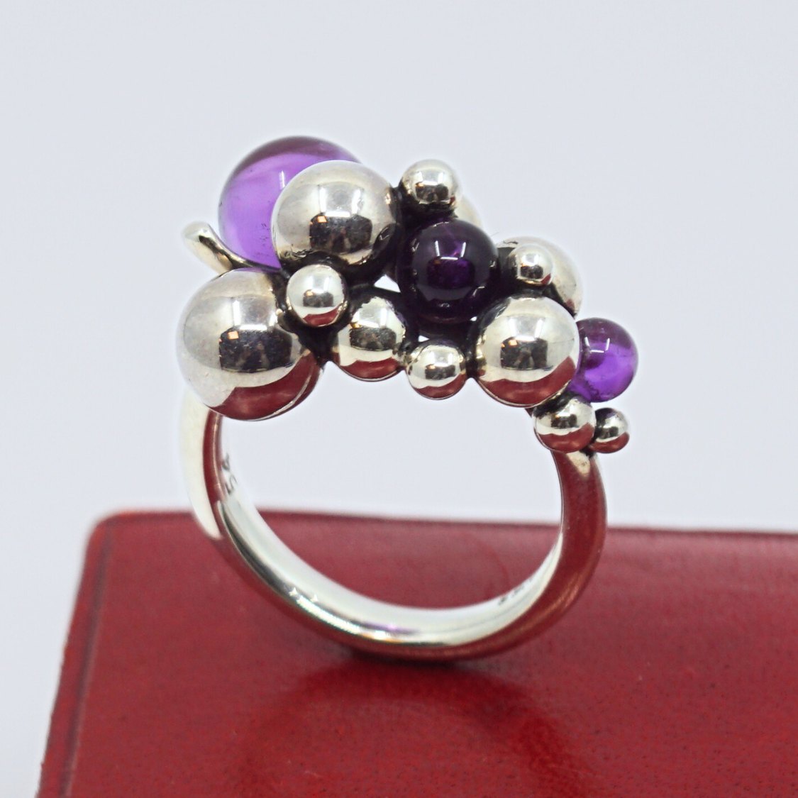 Georg Jensen; A Moonlight Grapes ring of sterling silver set with amethysts