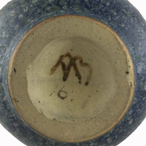Arne Bang kande af blåglaseret stentøj. Sign. monogram AB 161. Arne Bang, f. Frederiksberg 1901, d. Fensmark 1983. H. 14,5 cm.