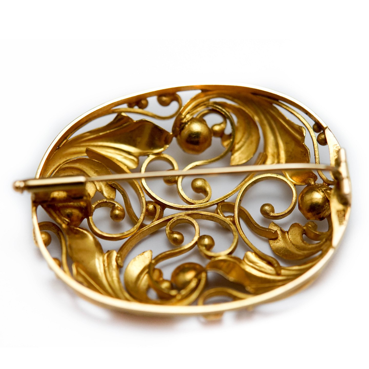 Viggo Wollny jewellery. A brooch in 14k gold by Viggo Wollny. Stamped "V.W 585". L. 4 cm. W. 3 cm.