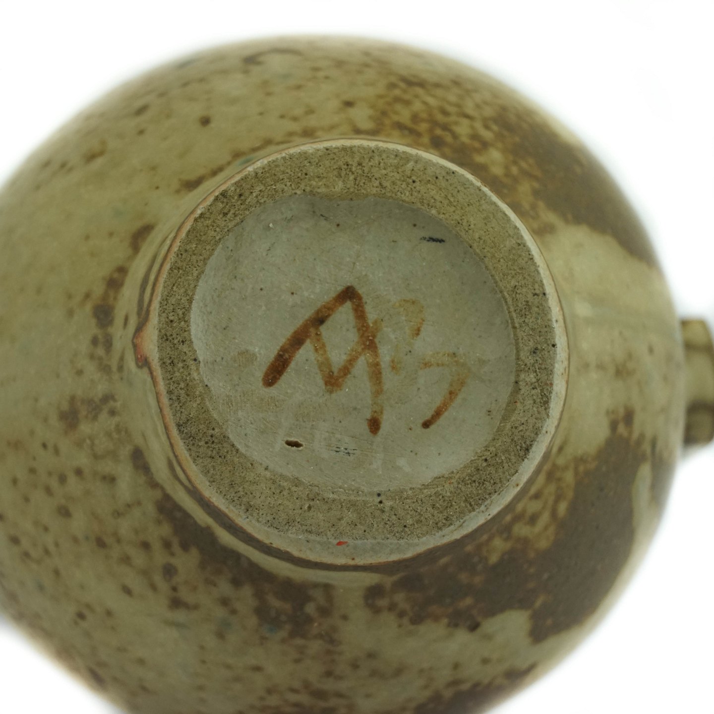 Arne Bang stentøj. Arne Bang kande af glaseret stentøj. Sign. monogram AB. H. 14 cm. Arne Bang, f. Frederiksberg 1901, d. Fensmark 1983.