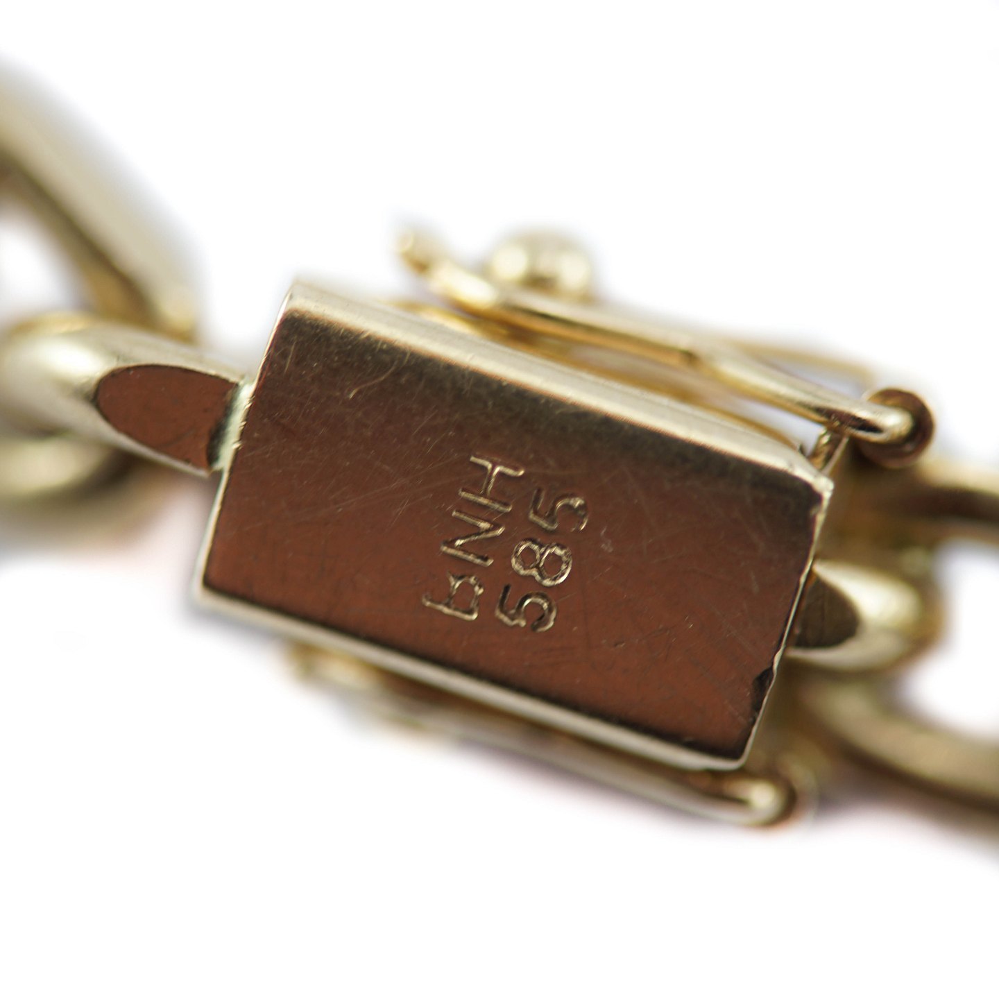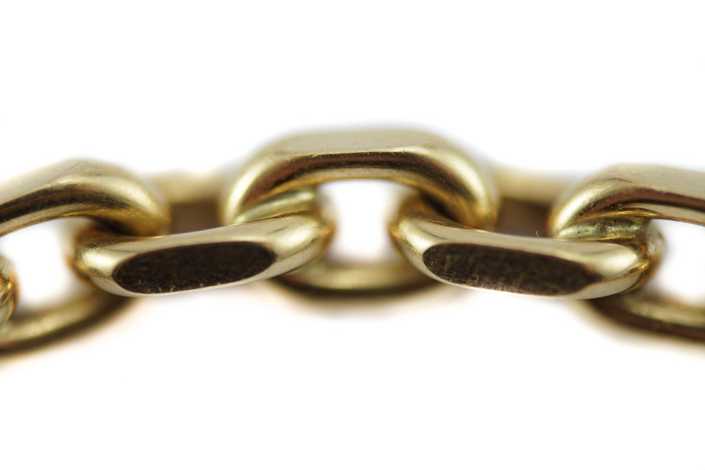 armbånd og halskæder af guld og sølv i bismarck-, blok- og murstensmønsteret.