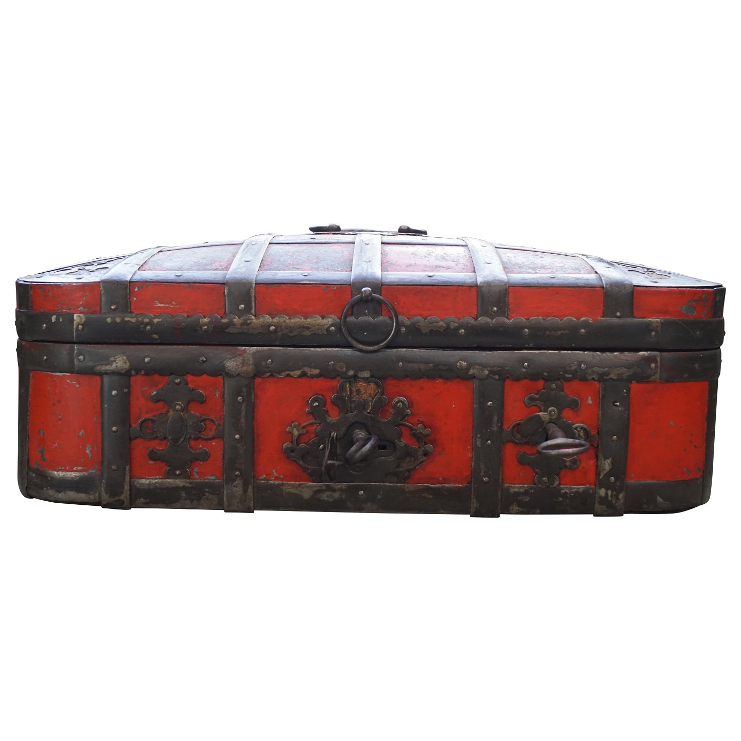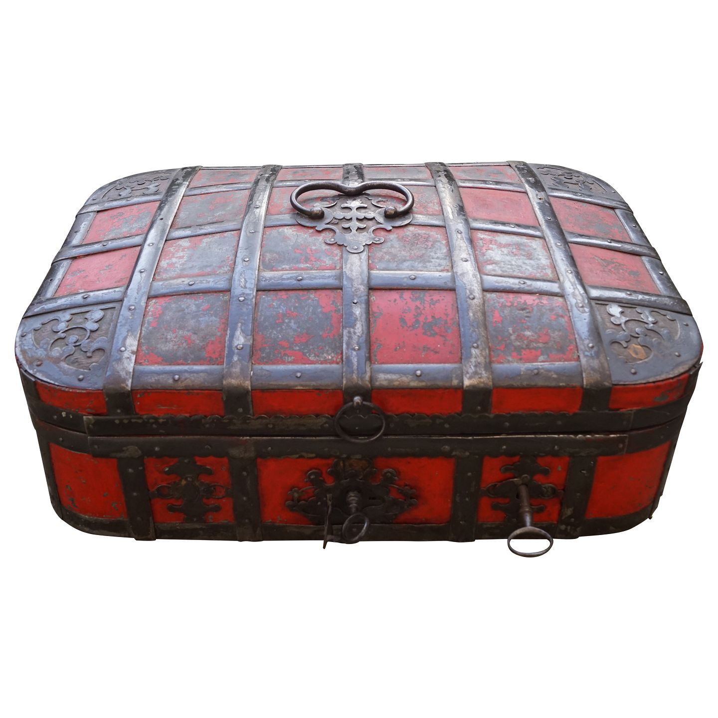 Tysk lausskrin/pengekiste af træ og jern 1700-tallet
