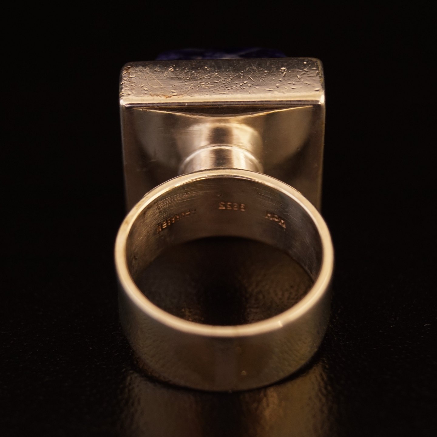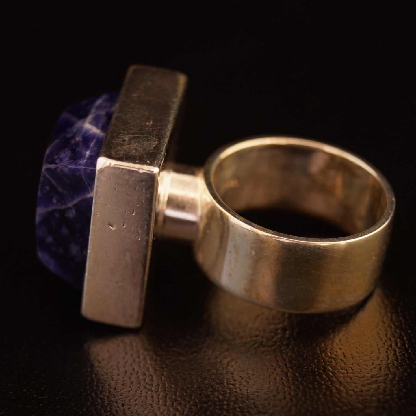Hans Hansen; firkantet sølvring med lapis lazuli. Str. 56.