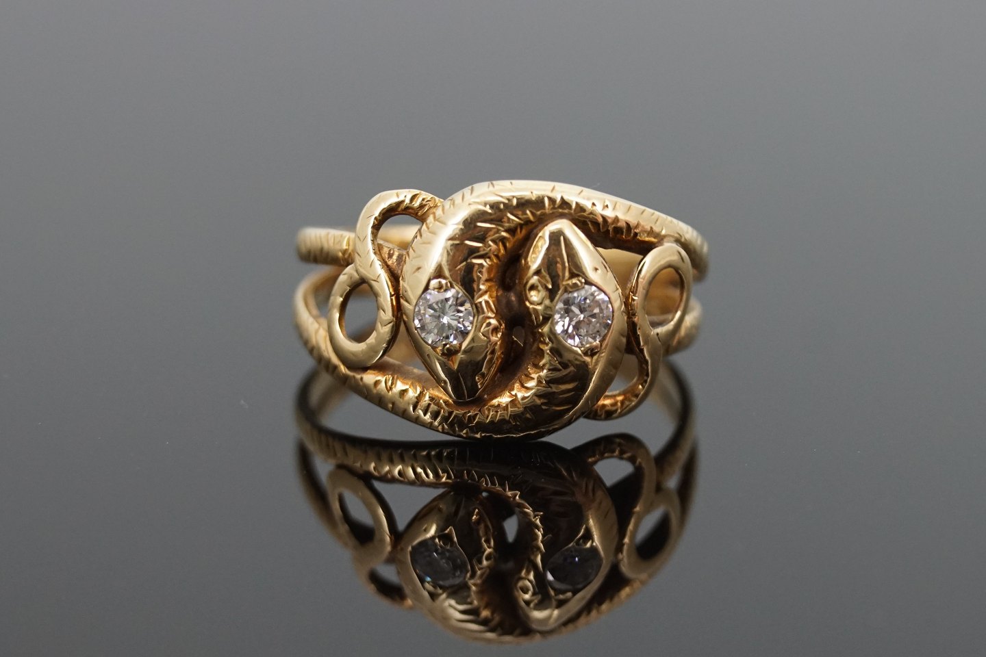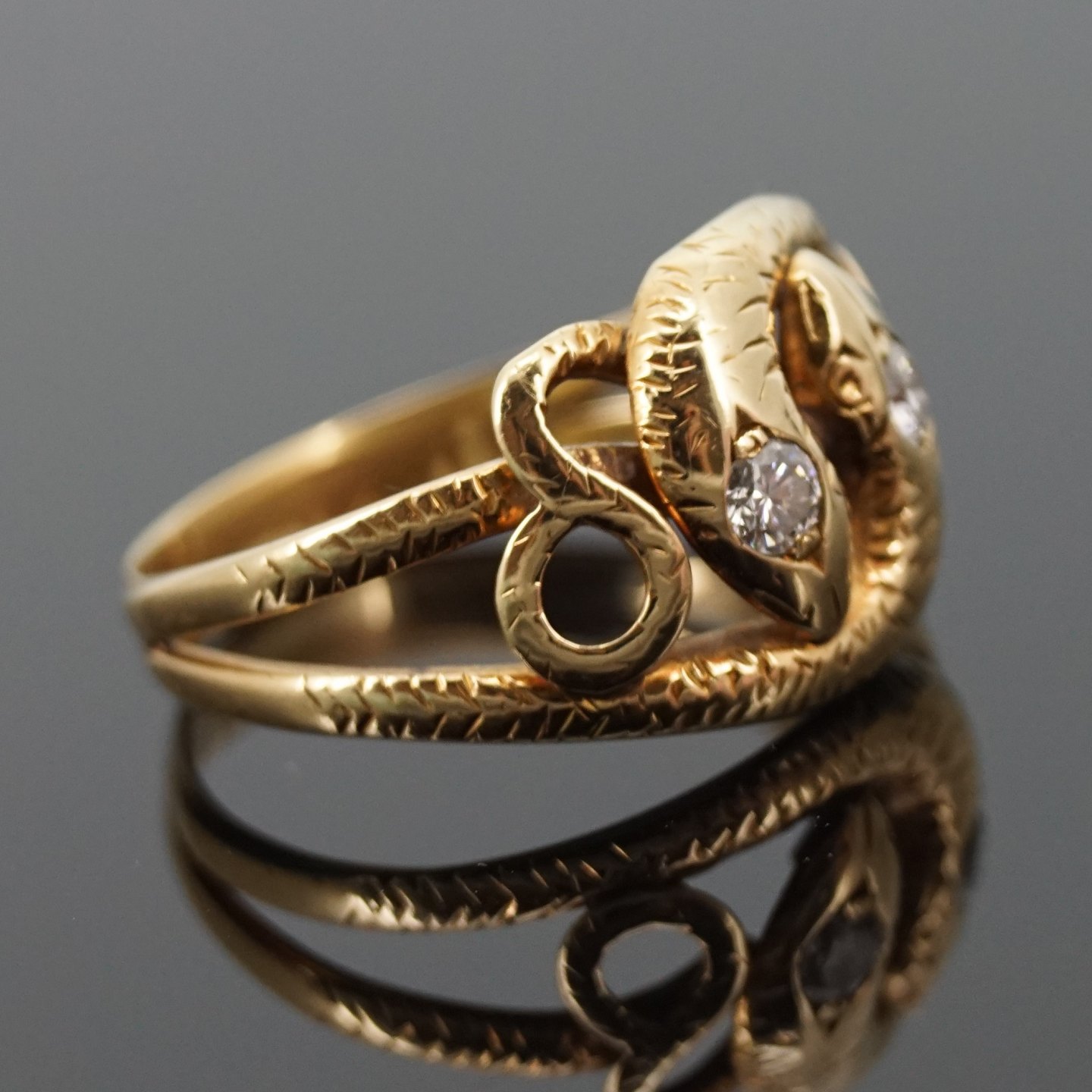En slangering af 14 kt. med to diamanter, i alt 0,50 ct.