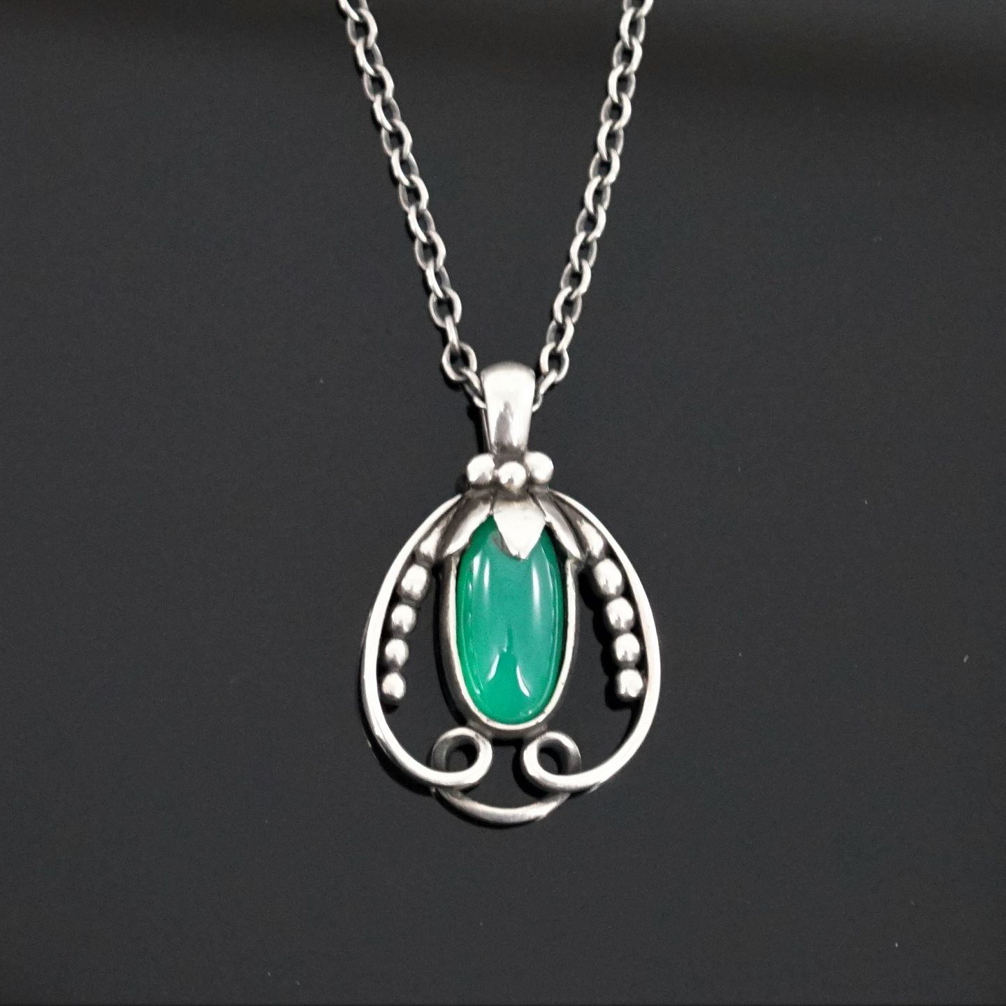 Georg Jensen; Heritage årssmykke 1990 af sterling sølv med chrysopras