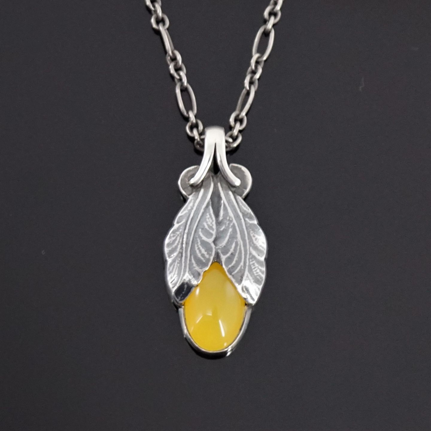 Georg Jensen; Heritage årssmykke 2008 af sterling sølv, prydet med en gul agat. H. 3,1 cm. B. 1,4 cm.