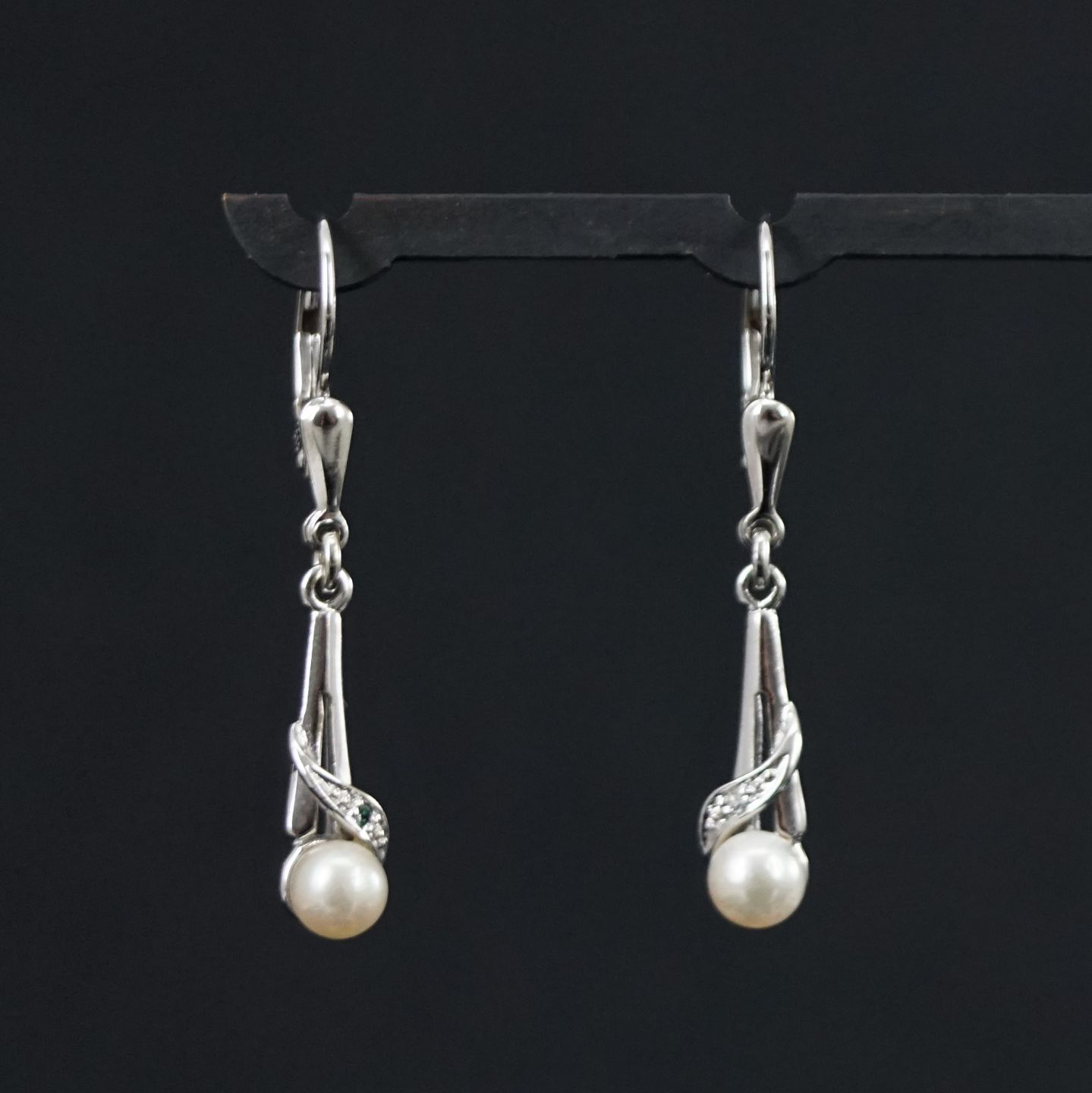 Ørestikker af 8 kt. hvidguld med diamanter og perler.