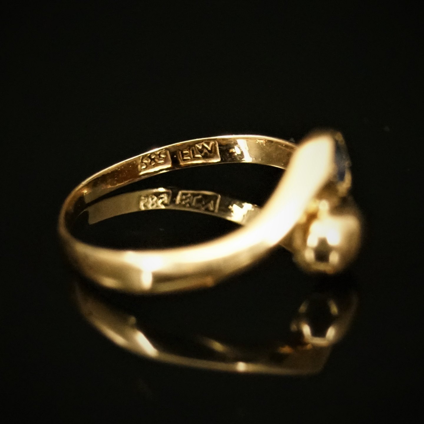 E. L. Weimann; En slangering af 14 kt. guld, prydet med safir. Ring str. 51. Danmark omkring år 1920.