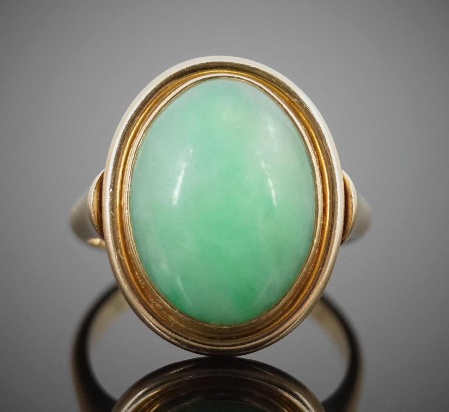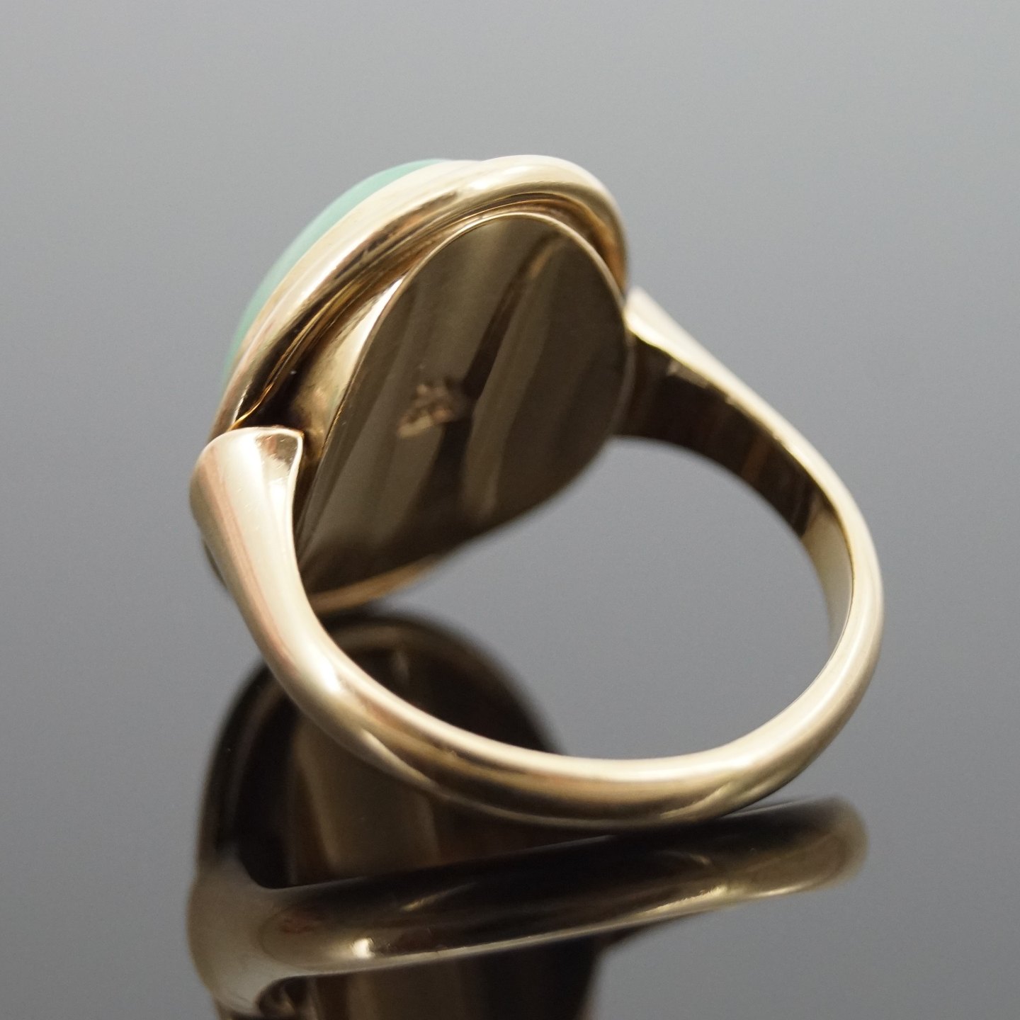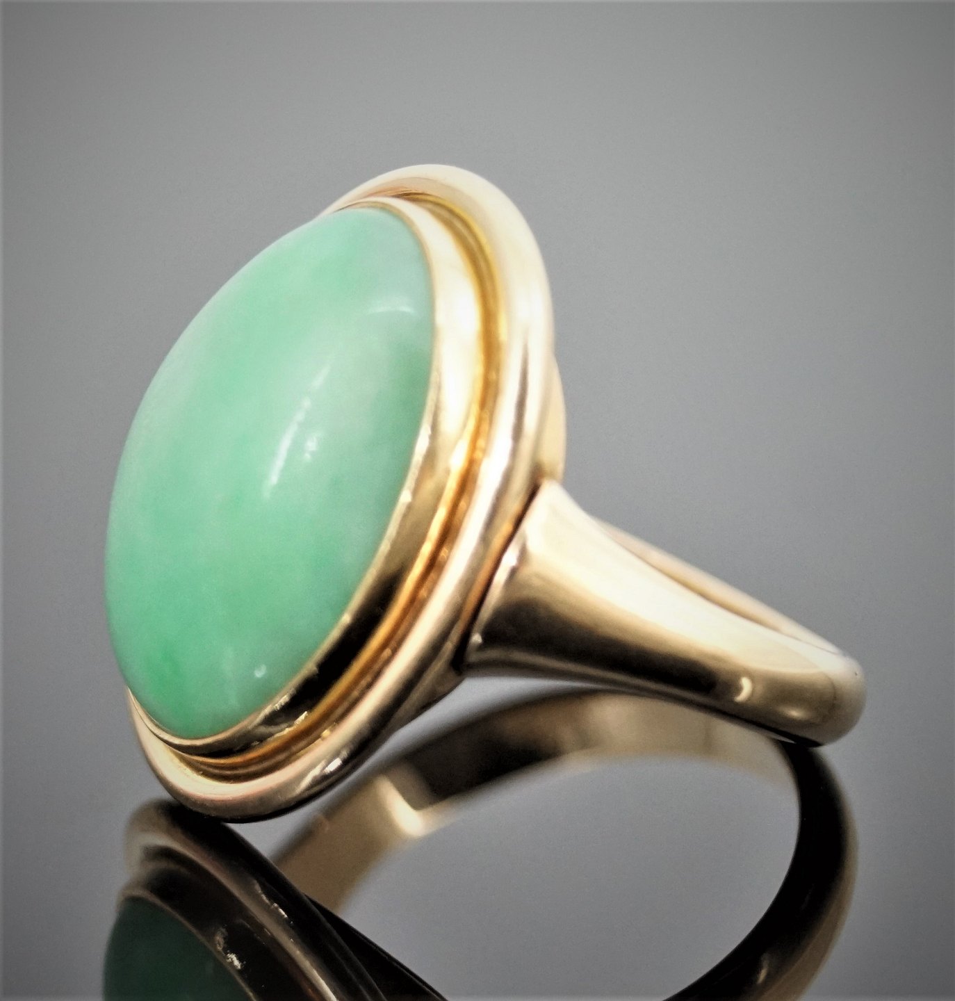 C. Antonsen; Ring af 14 kt. guld prydet med jade