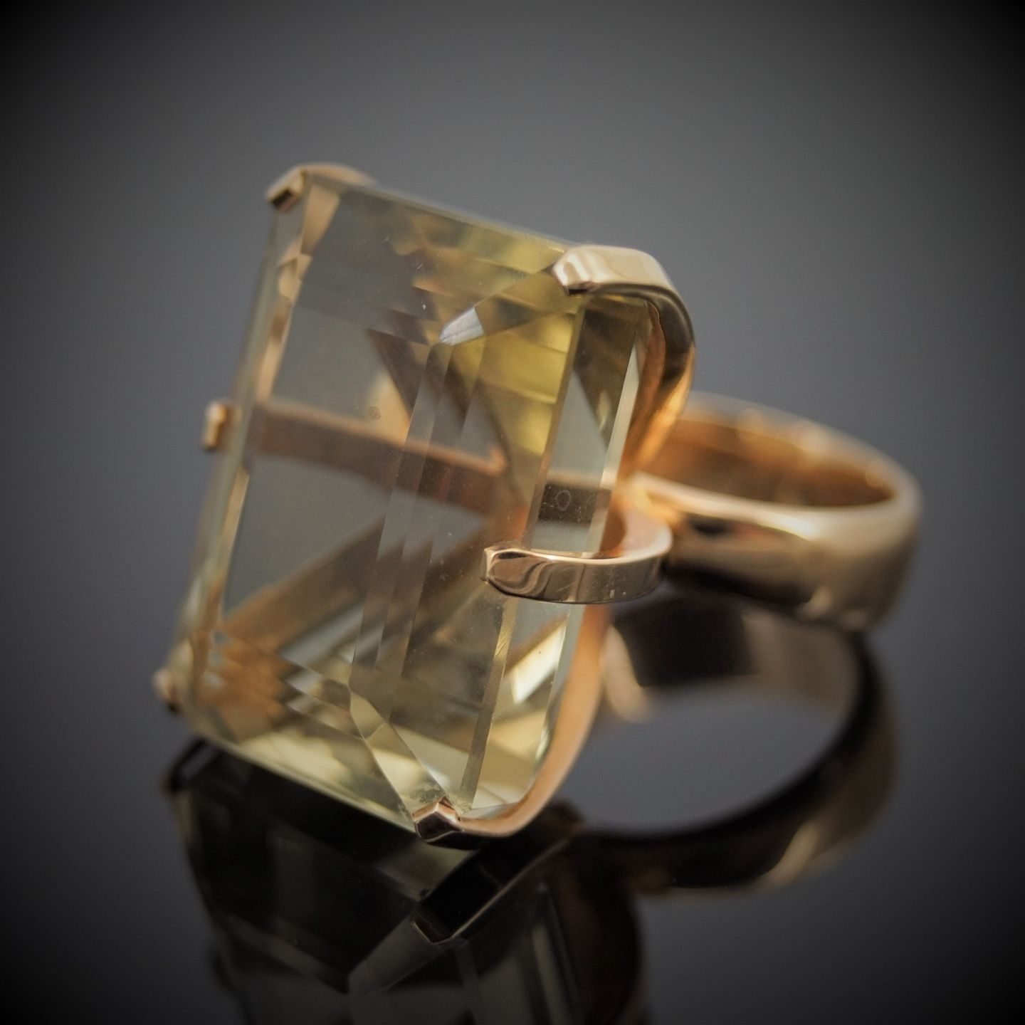 A cocktail ring of 14k gold set with a topaz