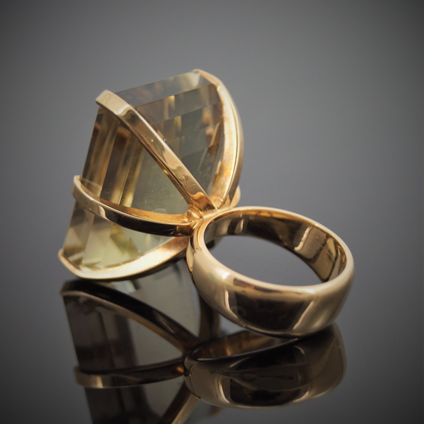A cocktail ring set with a topaz mounted in 14k gold. Around 1970. Ring size 51.
