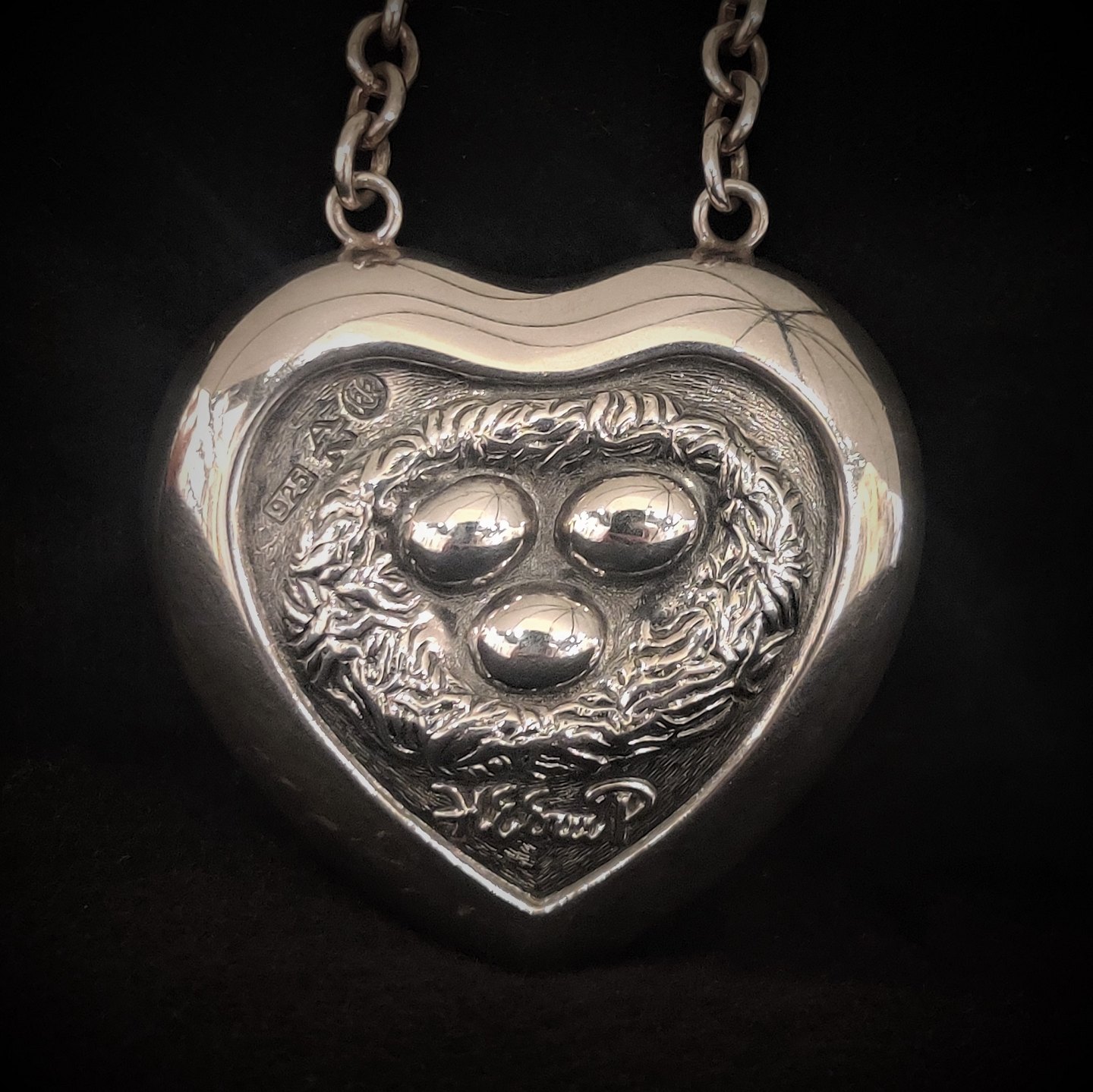 Henry Heerup; Stort halsmykke i sterling sølv, Kærlighedshjerte