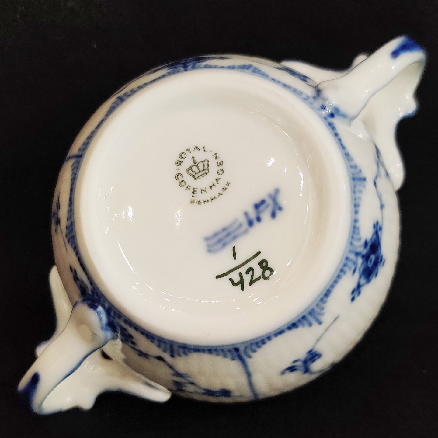 Royal Copenhagen, musselmalet riflet porcelæn; Sukkerskål med låg #428