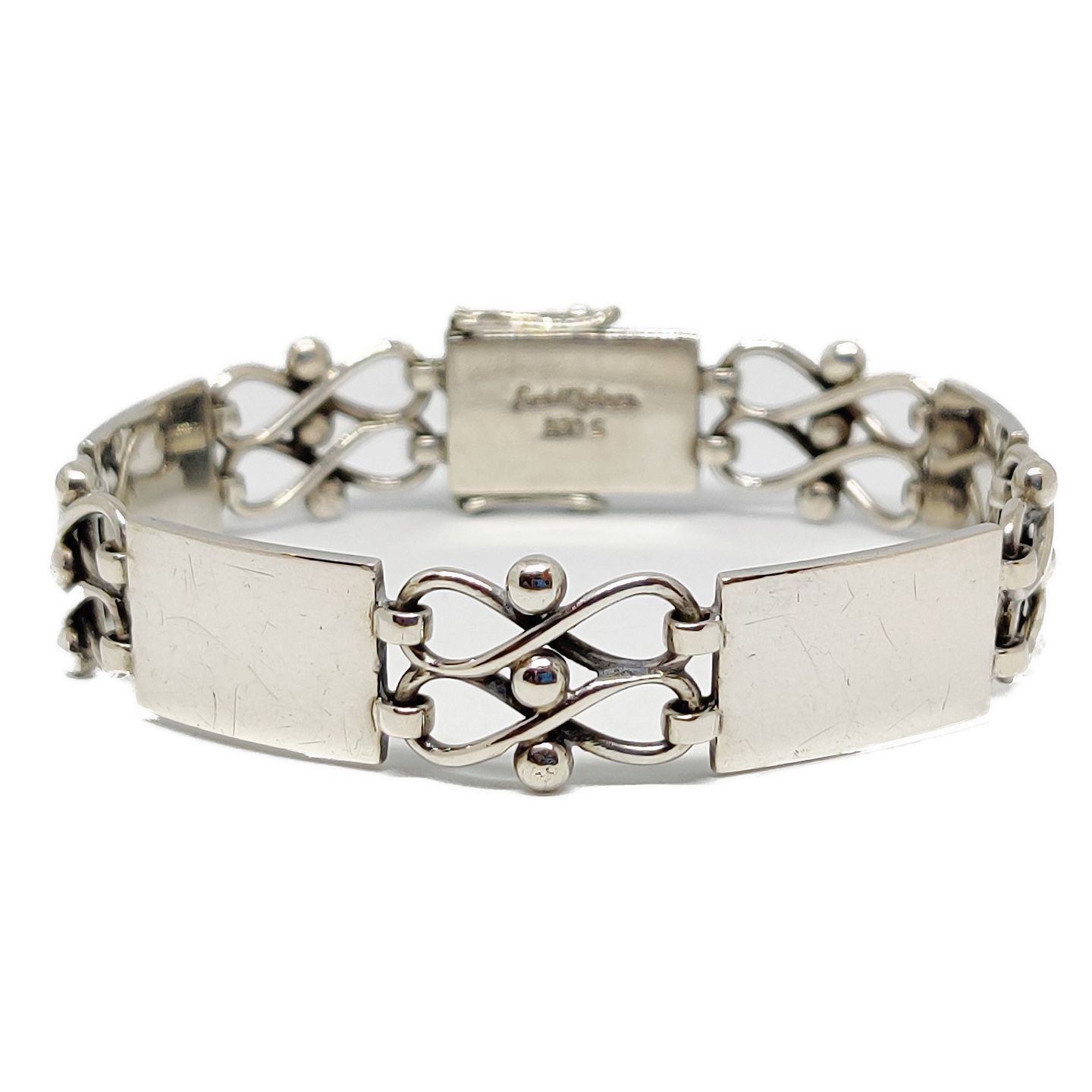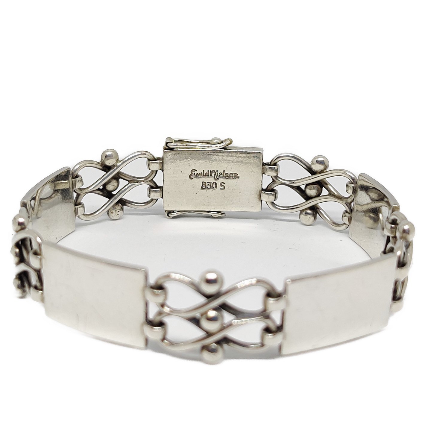 Evald Nielsen; Armbånd i sølv. Leddelt armbånd monteret med kasselås samt to sikkerhedslåse.