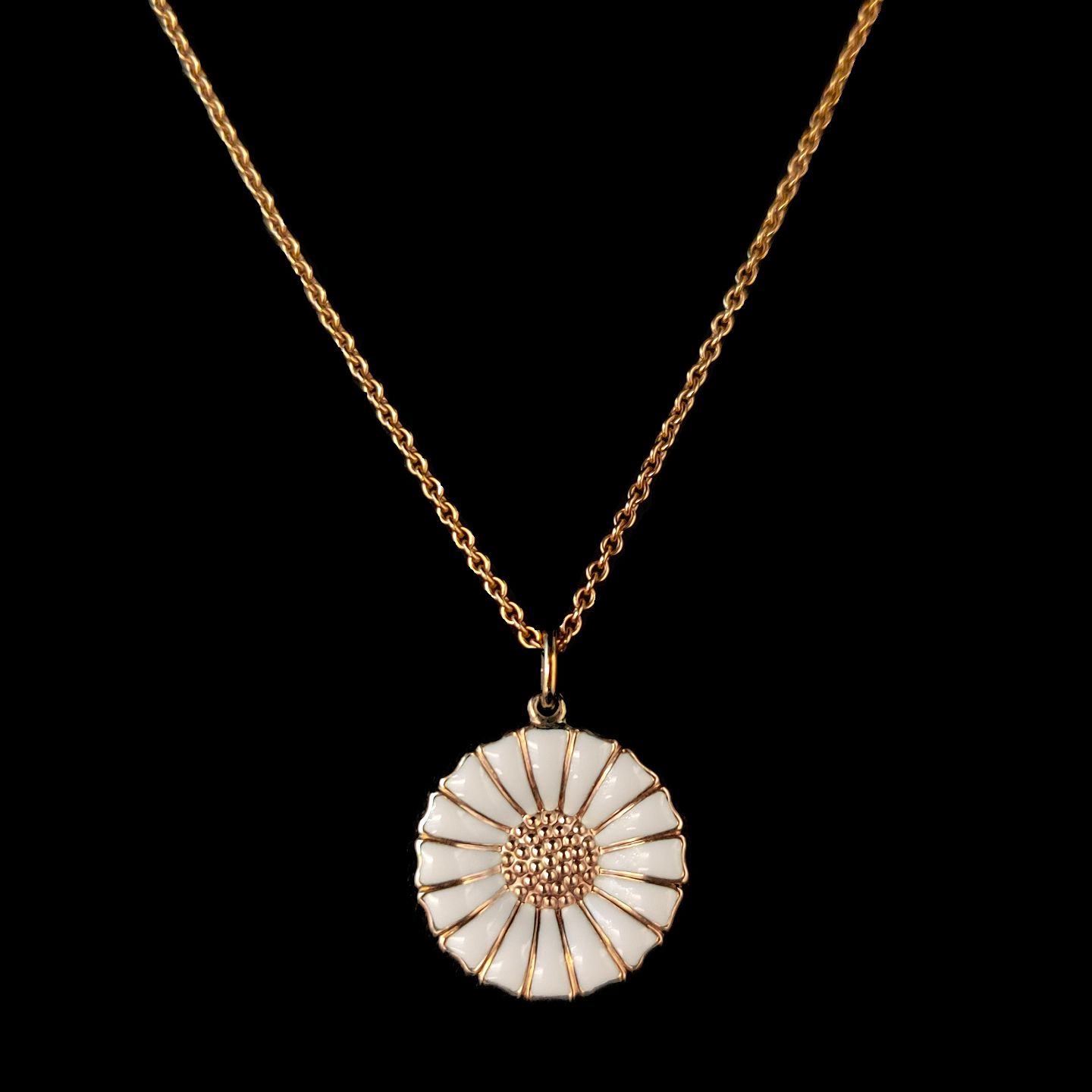 Georg Jensen; Daisy marguerit halskæde forgyldt sterling sølv med hvid emalje 18 mm