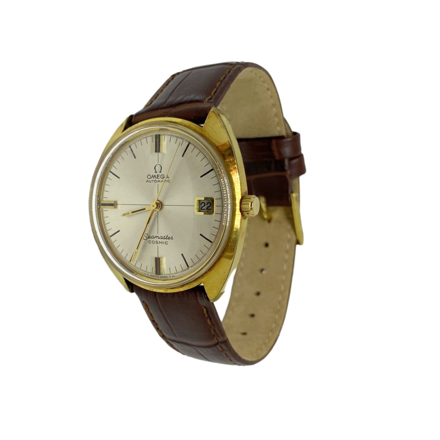 Omega Automatic armbåndsur, Seamaster Cosmic. Forgyldt med rem i brunt læder. Fra 1968.