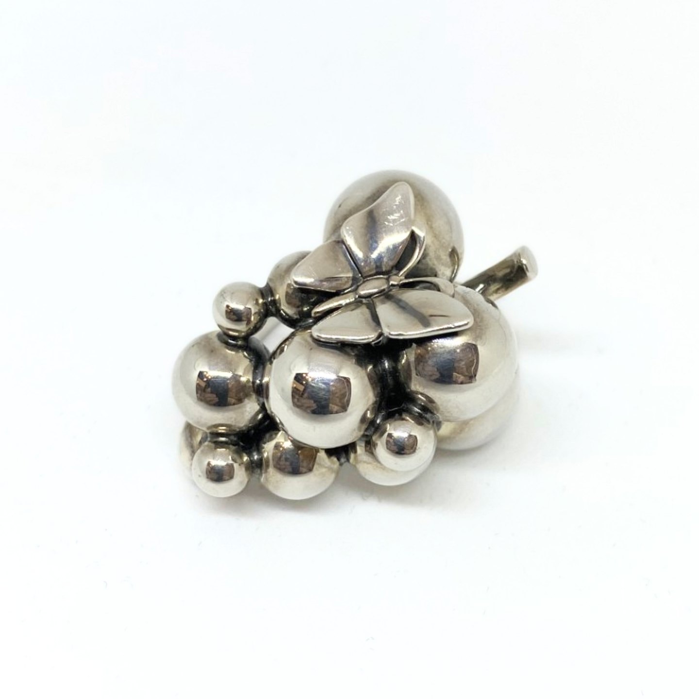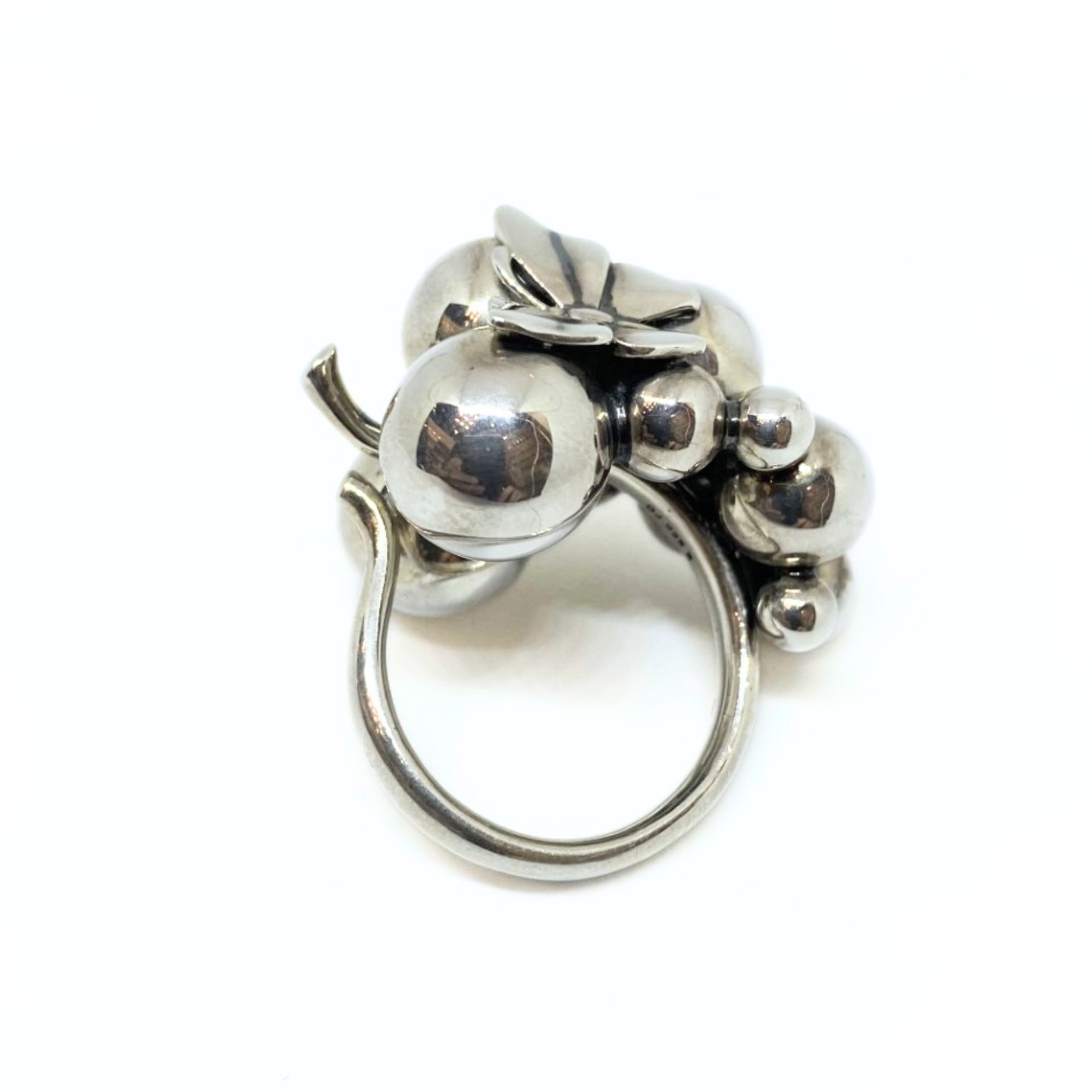 Georg Jensen; A Moonlight Grapes ring of sterling silver with a butterfly