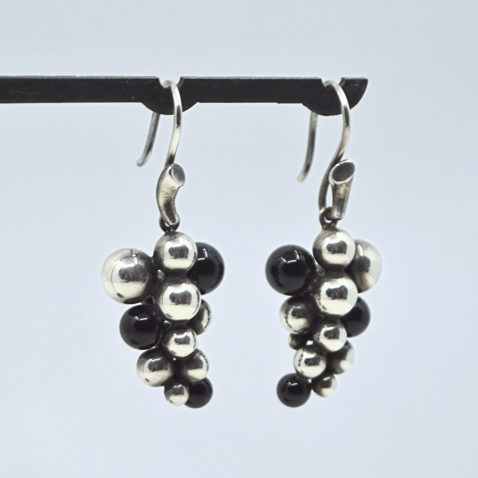 Georg Jensen; Par Moonlight Grapes øreringe i sterlingsølv med onyx