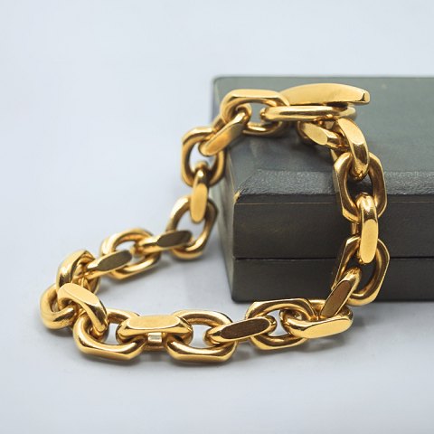 Frantz Hingelberg; Meget kraftigt facetslebet ankerarmbånd i 14 kt. guld