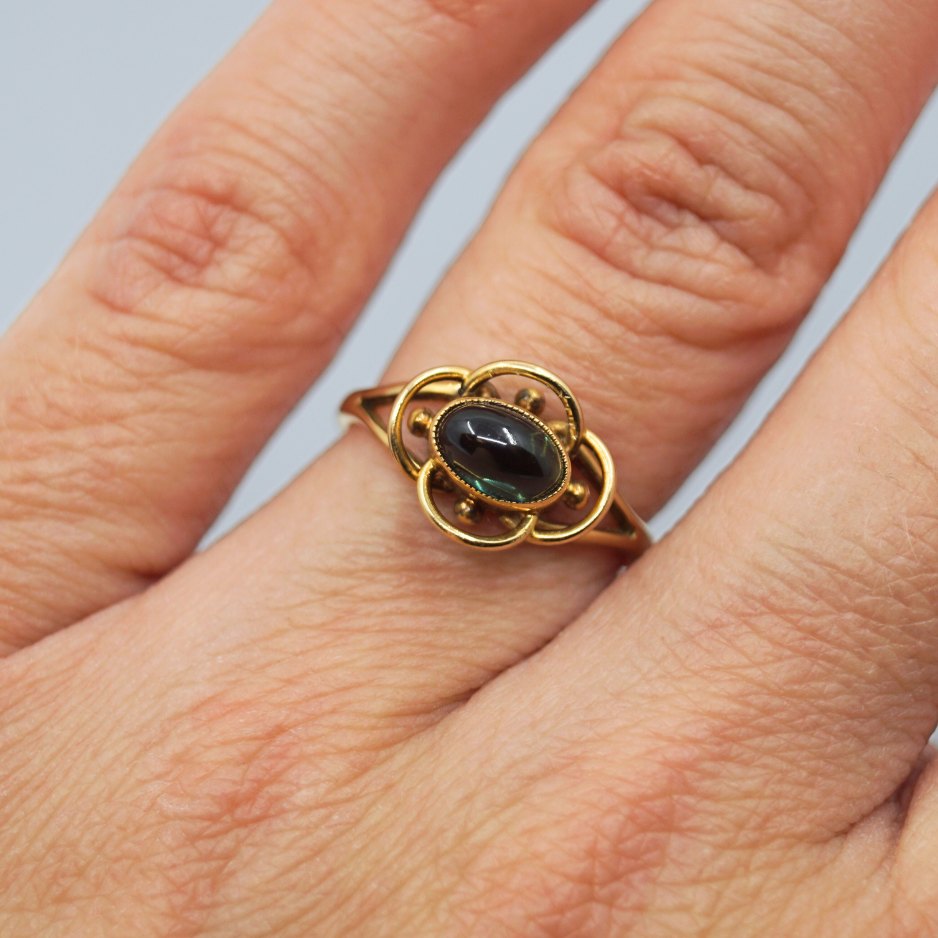 A. F. Rasmussen; Turmalinring i 14 kt. guld
