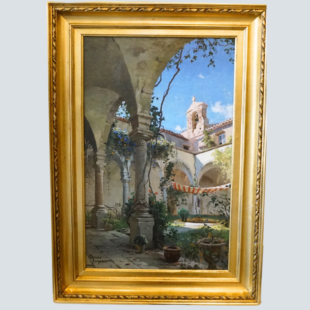 Peder Mønsted; Maleri, olie på lærred, klostergård i Taormina