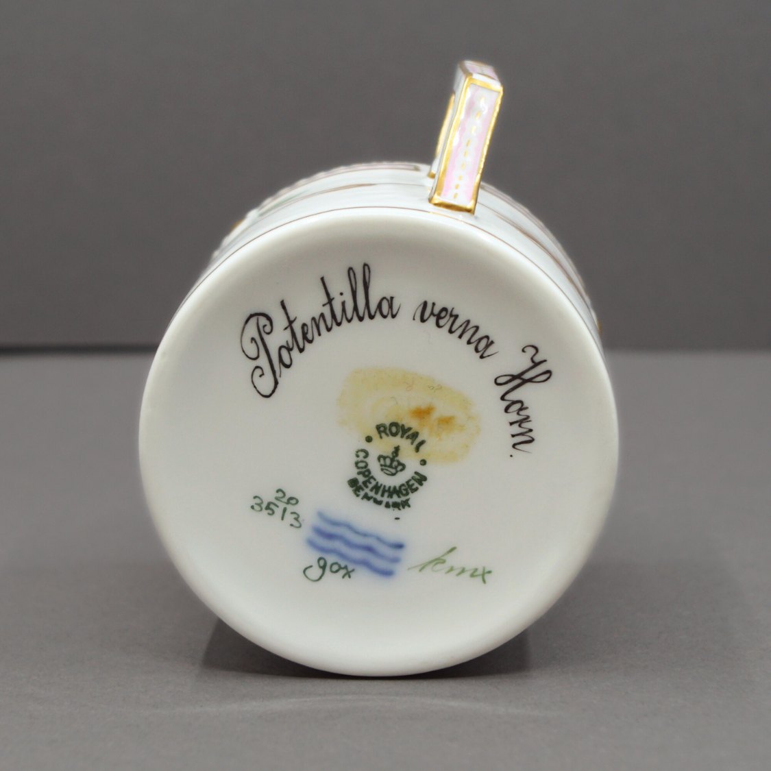 Dekoration: Potentilla verna Horn. (Vår-potentil). Kop h. 6,5 cm. Underkop diam. 14 cm.