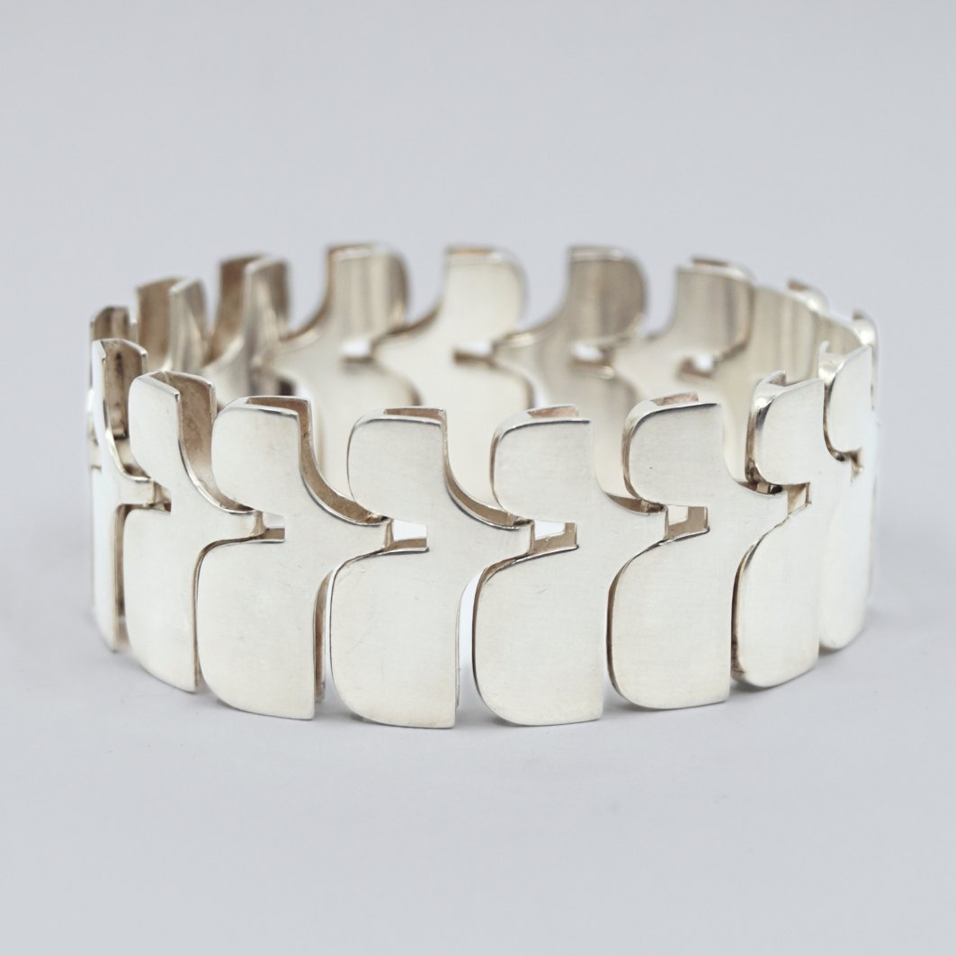 Ibe Dahlquist for Georg Jensen; Bredt armbånd i sterlingsølv, sammensat af led.