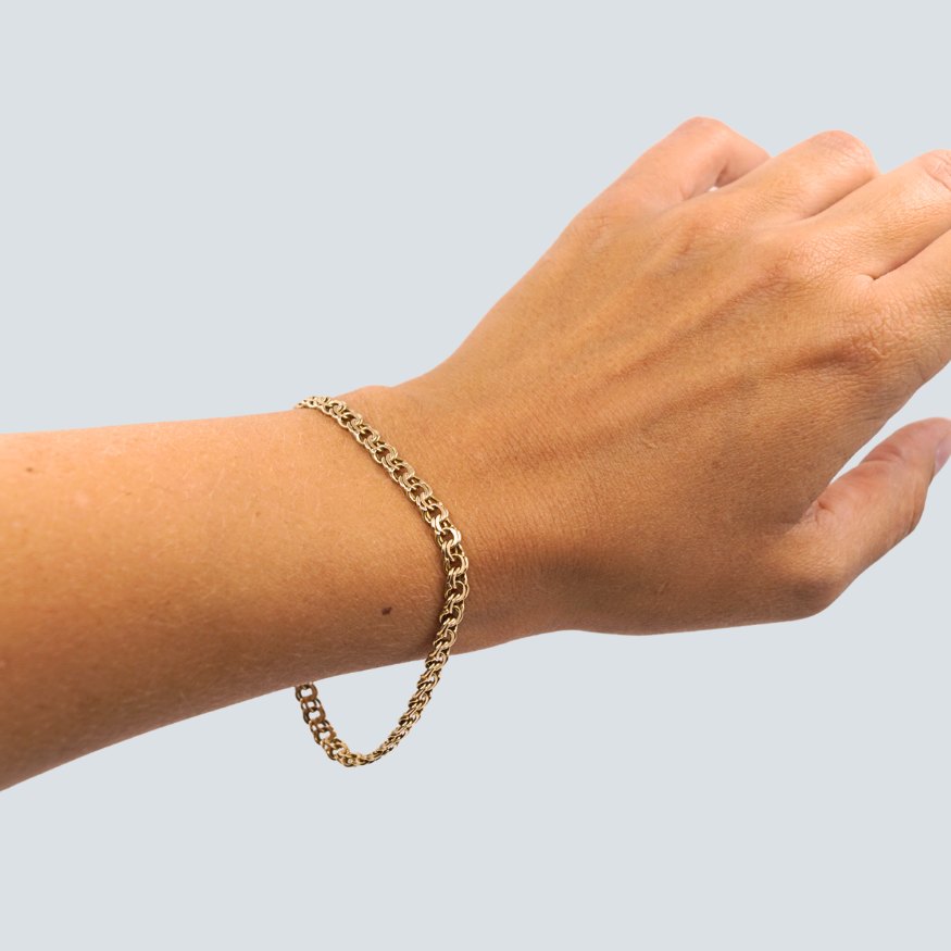 Bismarckarmbånd i 14 kt. guld. Monteret med kasselås samt sikkerhedslås.